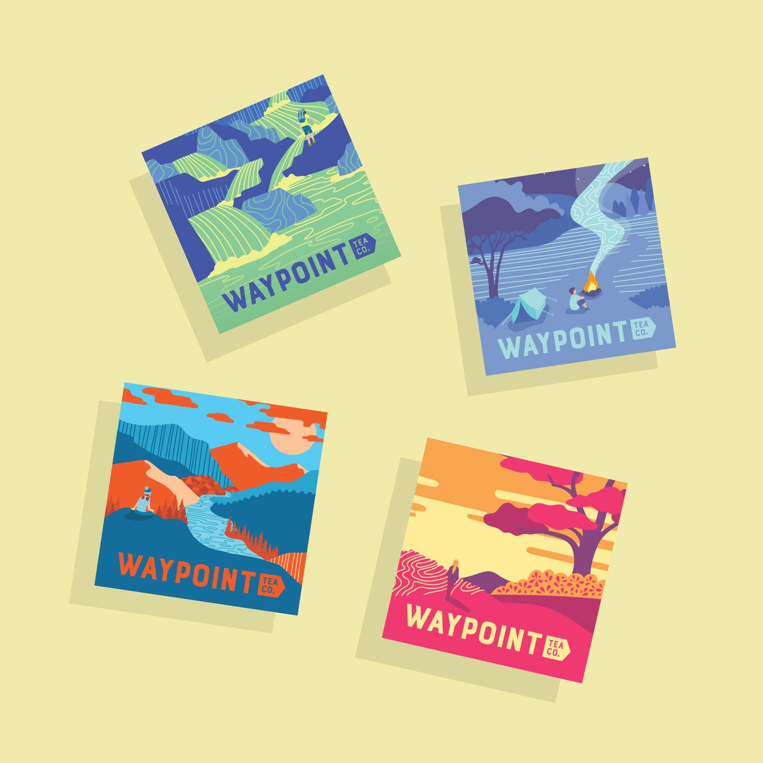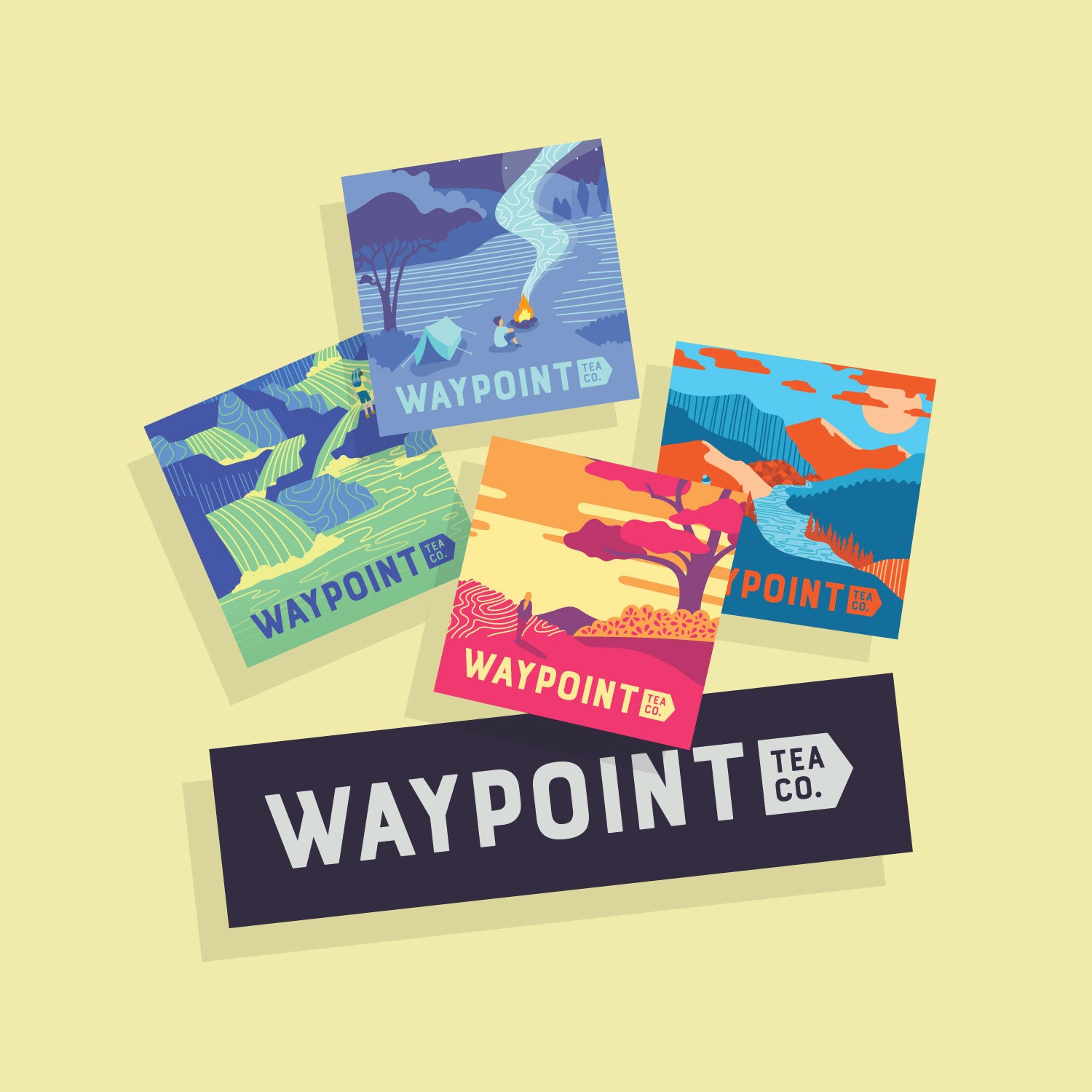 Be the first to show your Waypoint pride and grab a complete pack of our launch range sticker collection. Includes a long bumper sticker which is UV coated for outdoor use and four limited edition square vinyl stickers with scenes from our signature range: Waypoint Breakfast, Hibiscus Lemongrass + Peppermint, Earl Grey and Peppermint.